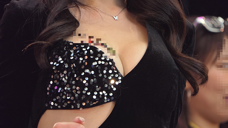 その中でブルーのタイトミニが目を見張ります。なんと10年前の過去メッセでお披露目した限定コスだそうです。体に張り付く激ミニです。立ってるだけでチラチラと。