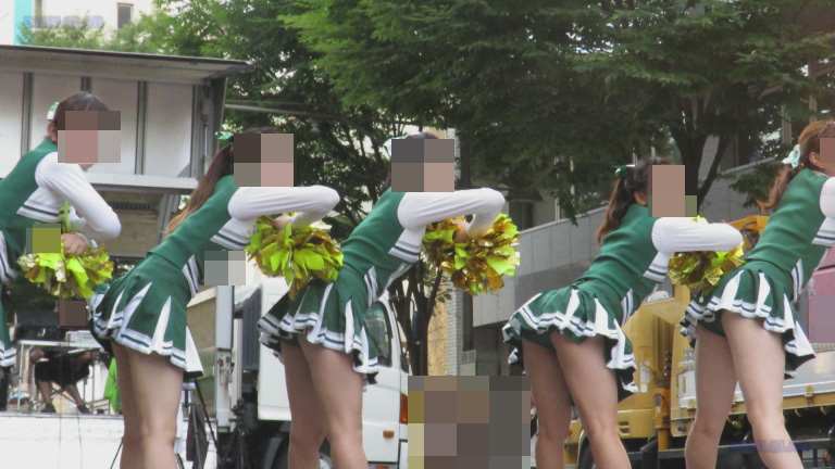 赤と白の2トーンチアユニ娘たちのシーンから。