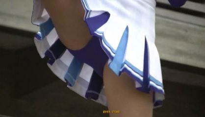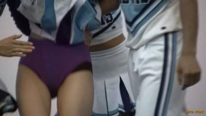 III.【DS私大】……野外。いつものチームとは違い、出来て日の浅い(とはいえ、部員は40名! と大人気)ダンスチアサークル。部外サークル(?)だけに、ピンクのユニフォームも軽やかにして、ヘソ出し。もちろん、キックもピンク (7分)