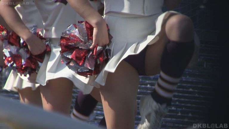 ただし今回は特別で、チアミニスカはそのままで上着はレプリカユニフォームといういでたち。