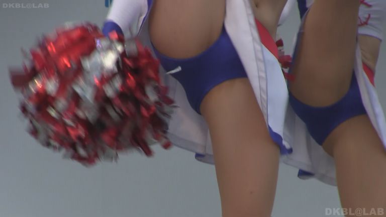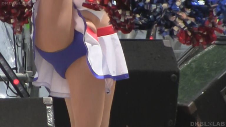 ひらひらノープリーツのミニスカからはブルーのV がいらっしゃいませ。