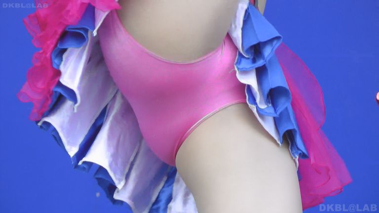 そのあとは常時おなか見えの紺地にピンクと白のアクセントユニ。