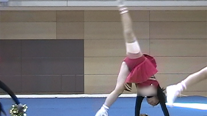 側転などタンブリング演技が多いのがこのチームの振り付けの特徴です。