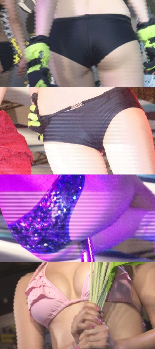 また後半のポールダンスの女性の股間部もやばく、ほとんどワレメが見えかかっており、