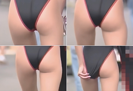 この年のレースクイーンキャンギャルさん達は大勢の人前でぴちぴちサイズのハイレグ姿で、かなり奥まで入った食い込み、もはやめり込みでハミ毛、マンスジ、お尻、ノーパンパンスト等々、身体のいやらしい部分を限界まで見せてくれました。