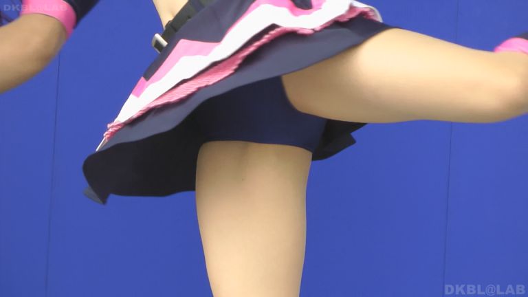 紺やピンクのVアンダーがひらひらスカートから全開。