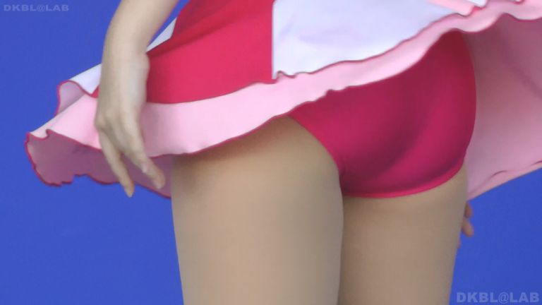 ケーキのような色遣いの衣装に紺は合わないということでアンダーまでピンク色。