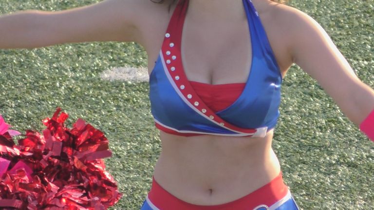 これだけの衣装でありながら足元はブーツではなく普通のチア用シューズ、白のくるぶしソックスというのがまたいい。