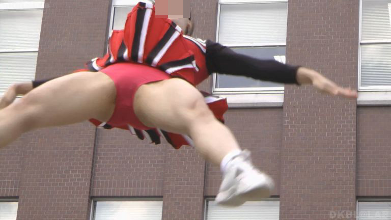 ステージセンターの好ポジションに日影が出ない明るい曇りの光線条件、チアっ娘の動きをよくとらえております。