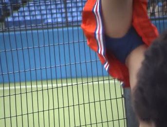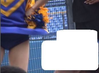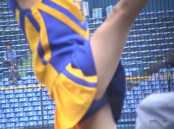 2.また別の、ぴーかん野外応援……(だらだらじゃなく、早くも)シーンが変わる、とゆーことは、作者の足繁く通う苦労もまたしのんでほしい! のでありますが、さてそれはおいて、こちらにも、同じコが。張り切り度は増大し、キックもいきなりハイアングルとなっておりますが、惜しいかな、“スパチラ”。他に、ちょい小悪魔入りのきゃわいぃ、ワタシもトシ甲斐なくこんなのが欲しーですぞちゃん も、すんごいハイキックで華を添えております(27分)