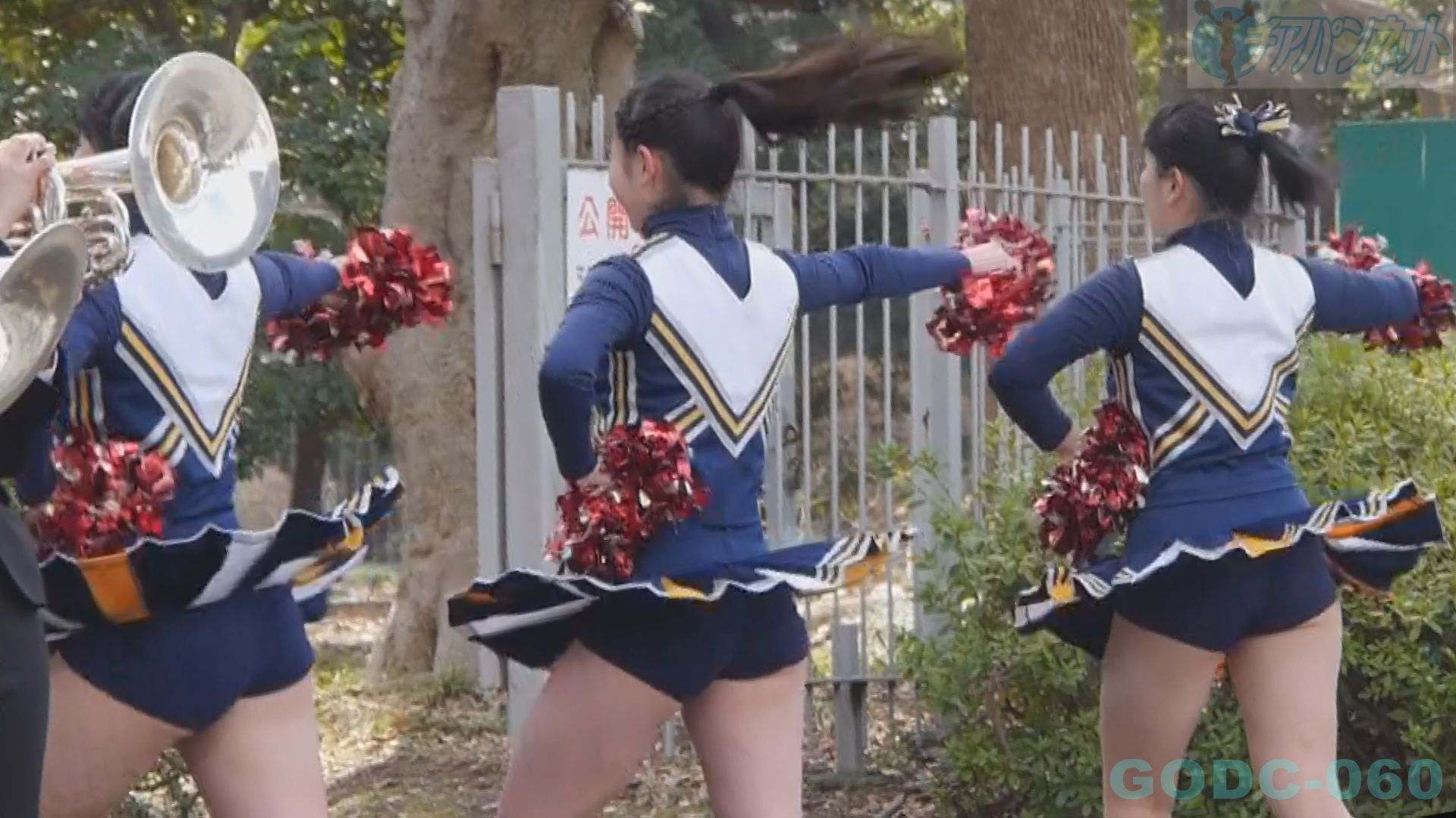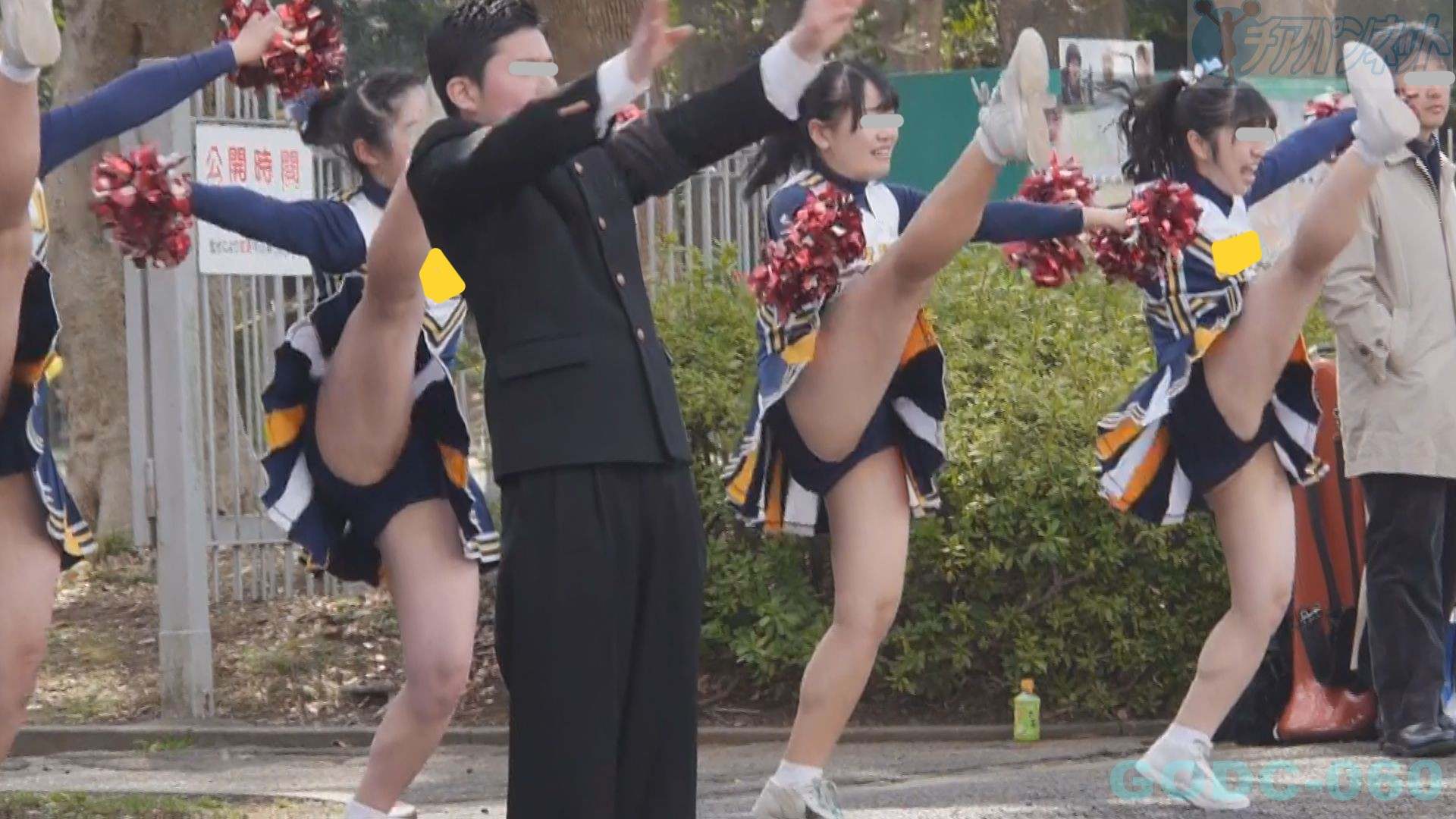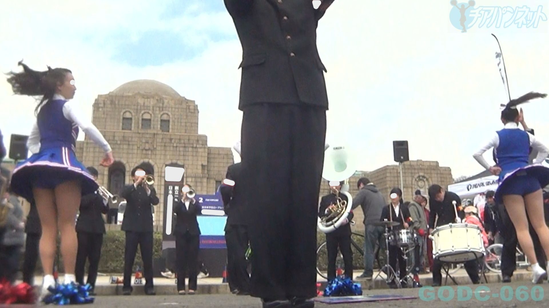 前半は手持ちカメラで超至近距離で演技する2人のチアを中心に撮影!お決まりのハイキックで青アンスコが丸見えに!