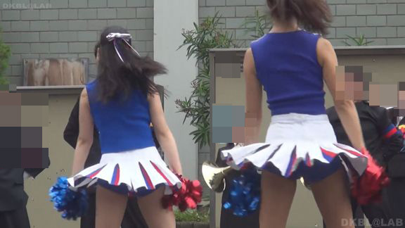 後方やや下からのアングルでアンダーこんにちはシーンがいっぱい。