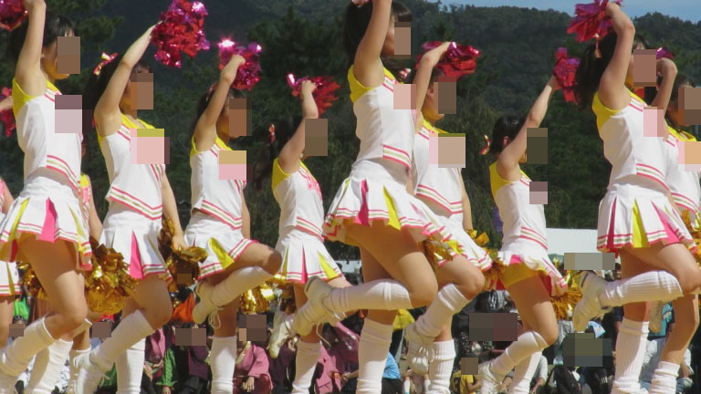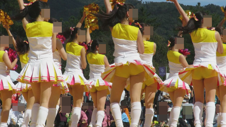 もう髪型ぐしゃぐしゃ、スカートが重たくて脚が上がらない。