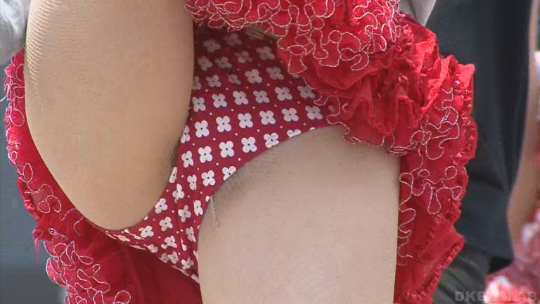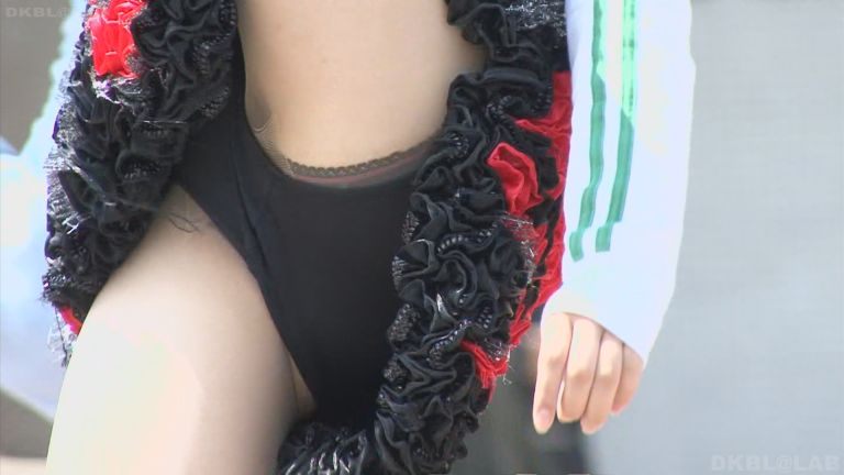花輪の様なポンポンとした装飾の下からアンダーウェアがちらちらと覘く光景が意外に刺激的。