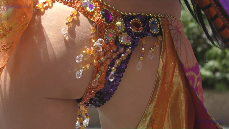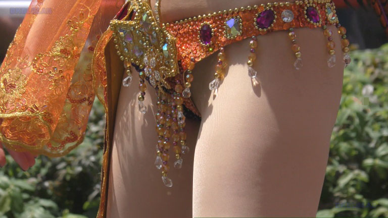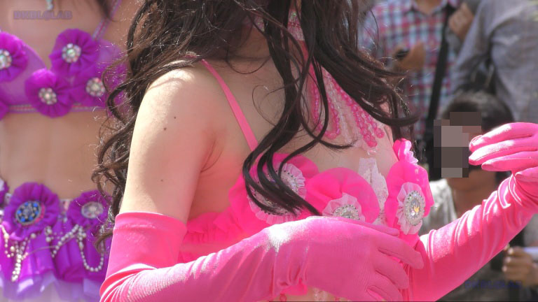 ジャケット下はTパンツ娘のお姿、カラフルサンバユニとまだぎこちないダンスで会場を和やかな雰囲気に。