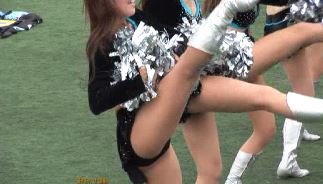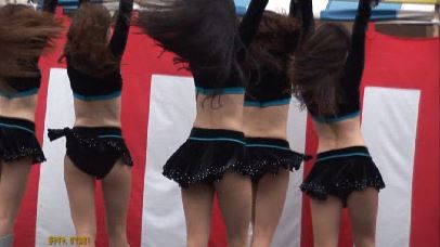 ◾秋……スタジアムにて。長袖、超ミニ、ヘソ出し。お馴染みの、ちょい苦労人ぽい、ワカメ状の茶髪ちゃんを中心に。スカートが少しめくれたまんま、アッチ向きに待機してるシーン、終わり頃、メガネのおじさんがハミ乳をじろ見してるシーン、遠目ながらも、大の字ジャンプ&アッチ向き前屈&ラインダンスキックシーンetc.)(59分)