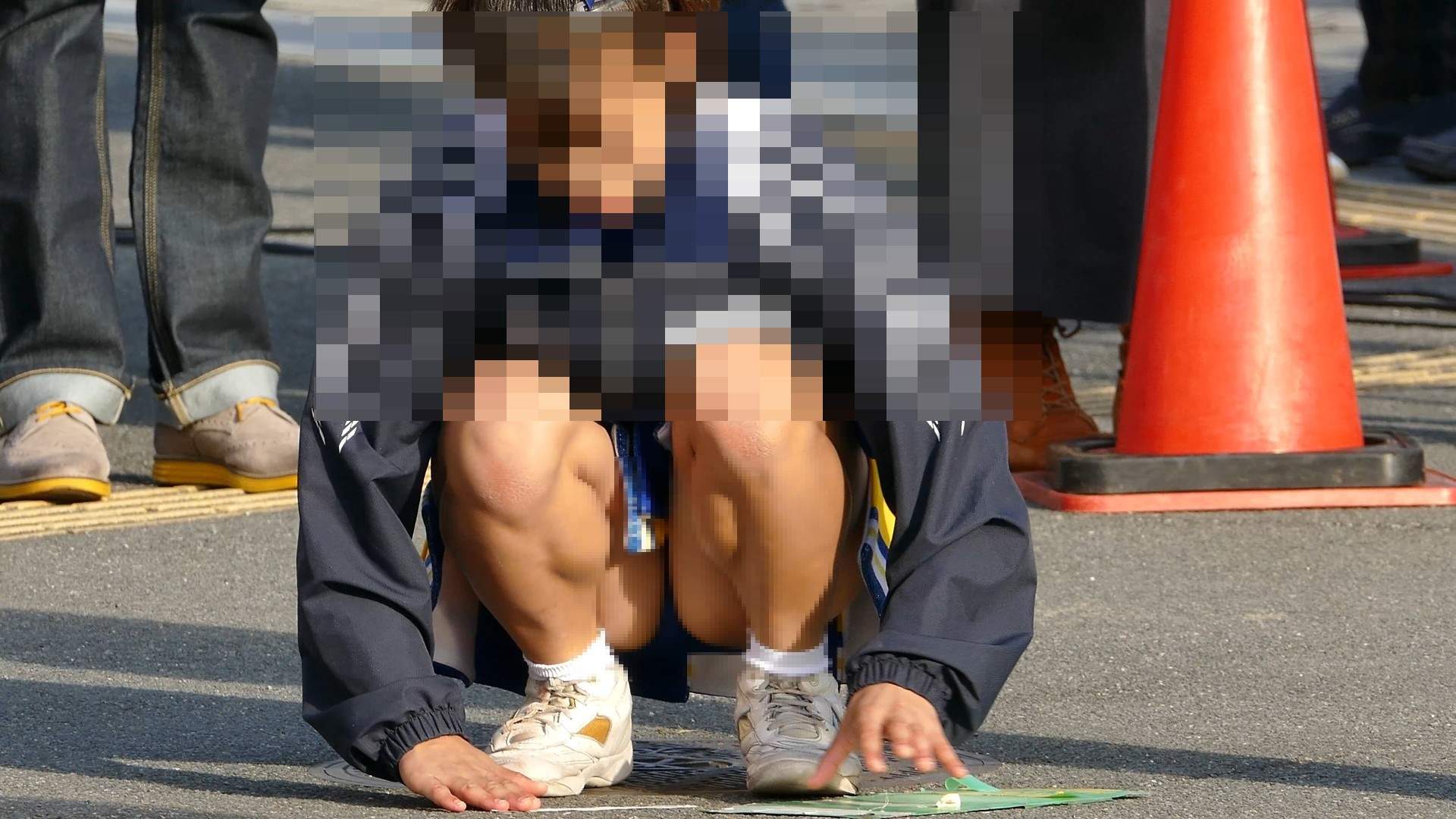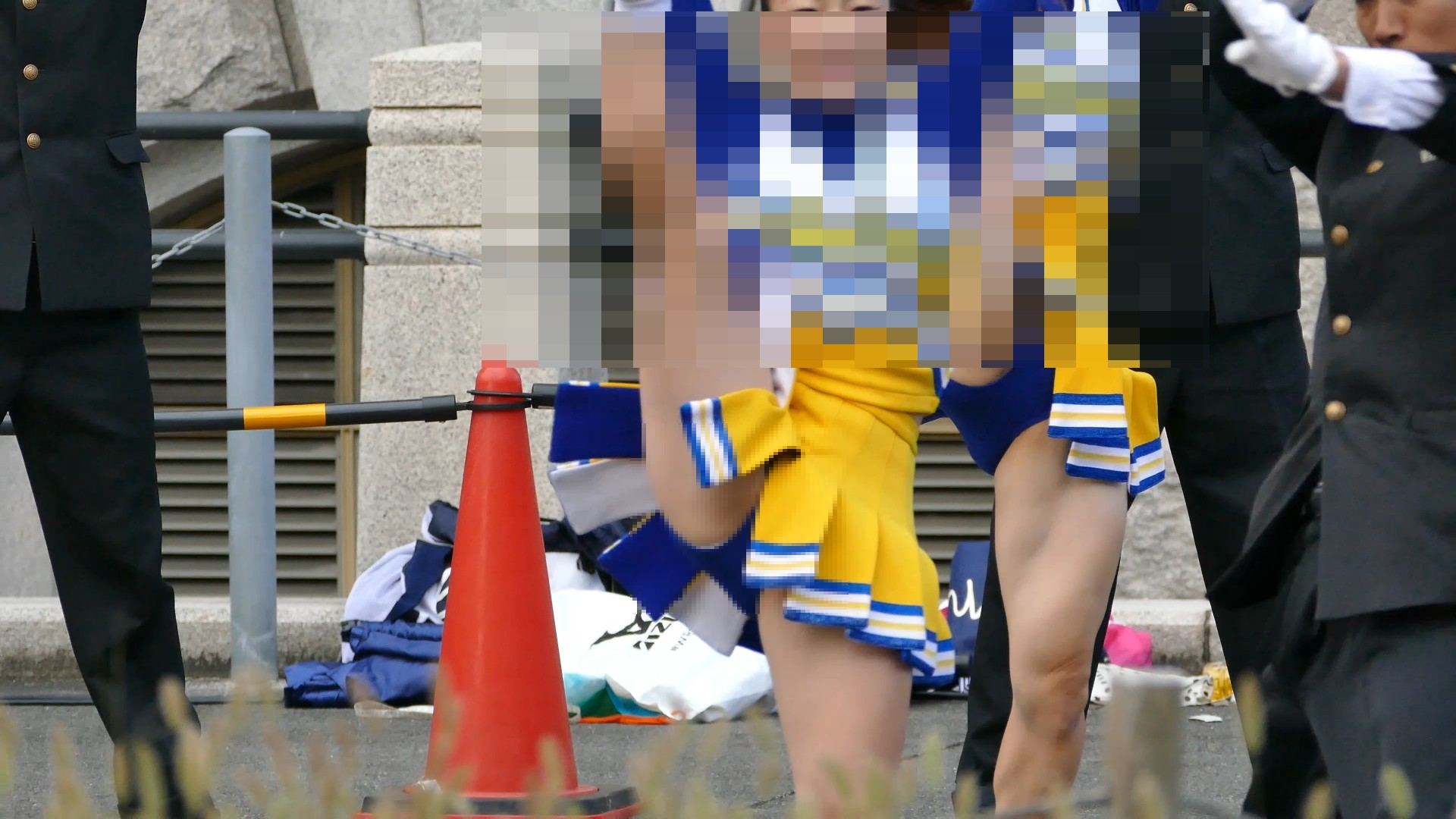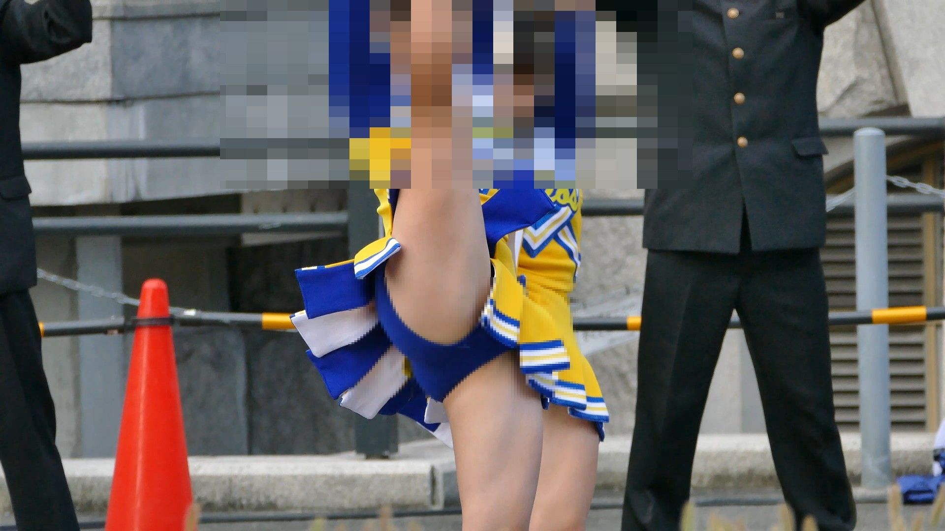 しゃがみ座りでΔゾーンが丸見えチアも!