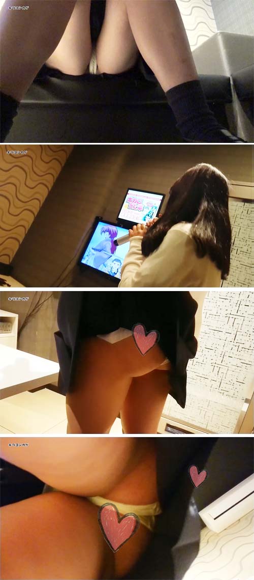 これまでも他の子達でそうでしたが、集中しているプリクラやカラオケ中はスカート近辺に神経がいってないようなので、安心して堂々と捲る事ができます。