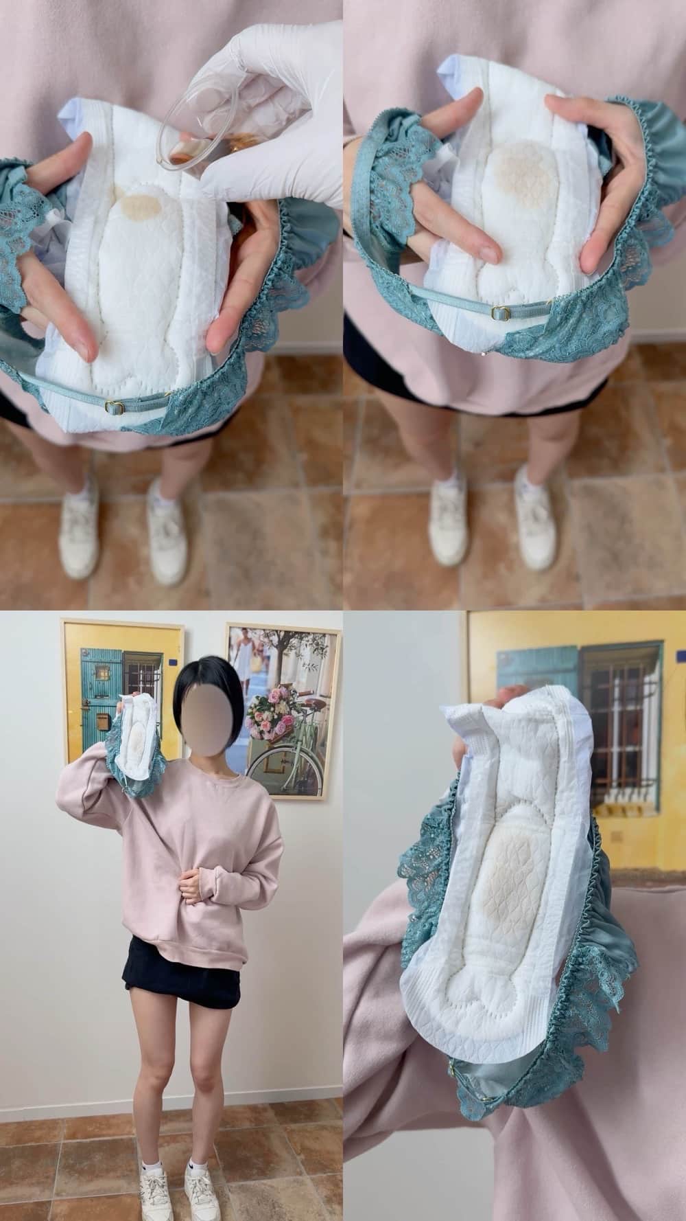 まずはナプキンの装着姿、装着後の肢体観察、そして神秘に包まれた秘部も交えて味わう。。。