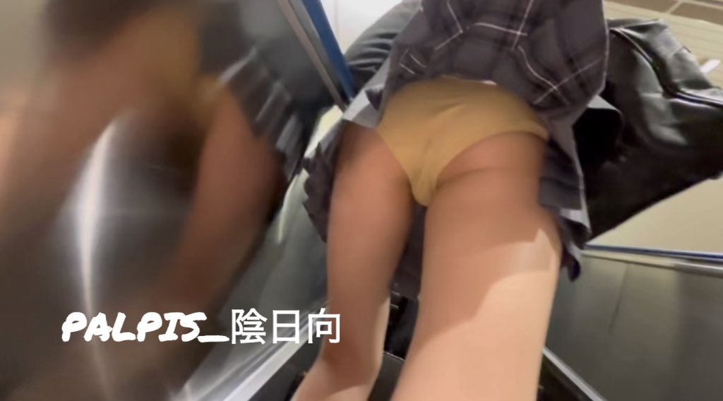 某校から数駅離れたかなり人が多い駅。通勤通学時間帯だから特に人が多く、JKも沢山いるが人通りが多く中々チャレンジするのが難しい。タゲ定めをしている中、SNSで有名なグレーチェックのミニスカJKを発見。前後ともにかなりの人だが、タゲをこのJKに定めて真後ろに着いていく。エスカ乗り込み直後からライトONして一瞬だけど捲り接写で攻めた。黄色の生Pがドアップ!