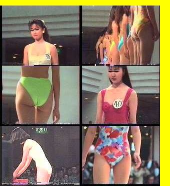 どこをどう手配したのやら、ステージ上手側(の出入り口)という(ちょっと例のない)絶好のポジションからのミスコン作ですが、この効果覿面(てきめん)度たるやご覧の通り――自己紹介後の往復ウォーキングで、顔、▼地帯、ツーケーの3点をおトクなセットでやすやすget。しかも、全国的知名度のあるミスコンだけあって、下は(複数の) 女子校生から、可愛いコ・美人が続々。参加者うん十人=よりどりみどり。
