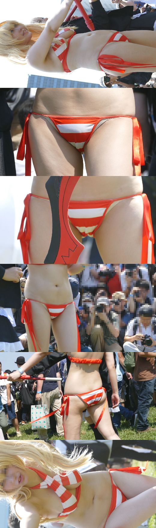 リアルにヤバすぎます!野外コスイベに集まる露出狂レイヤー達NO-4 縞紐ビキニちゃん編