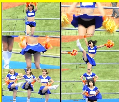 中盤を中心に黒なキック、ターンetc. けっこうチラってます。“○○演奏家”さん、談、『珍しい青いユニホームでした。ターンする際のお*のクイコミ狙いです』(46分)