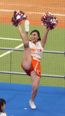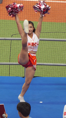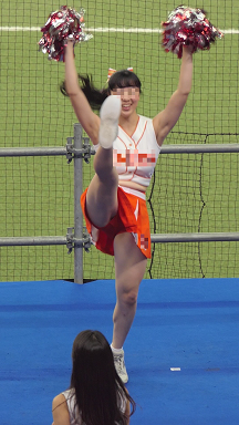 躍動するチアリーディング、チアガールをカメラを縦撮影しました。