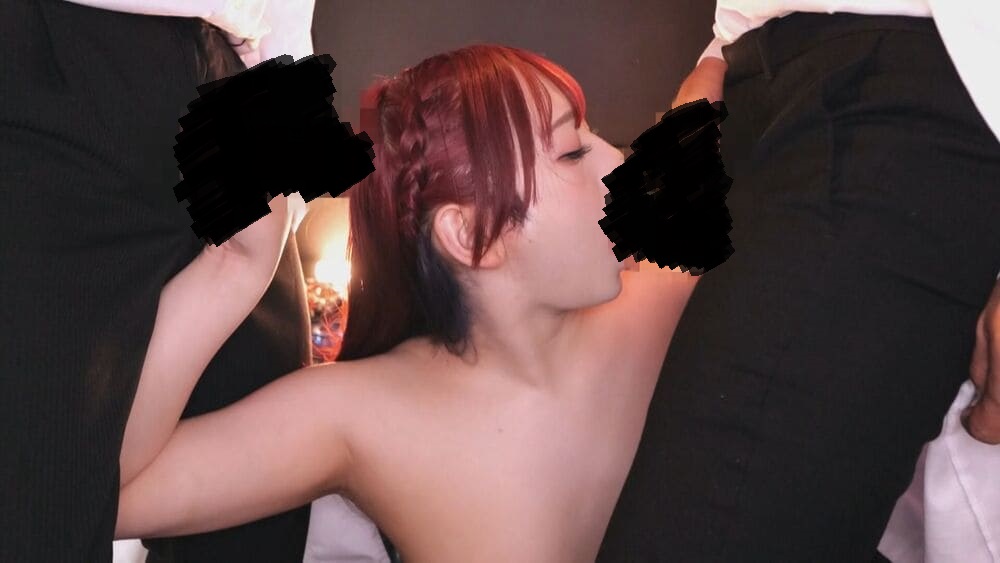 ムラムラした男達は勃起したチ〇ポ出し、彼女に咥えさせる。