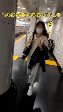 1日目と同じタイト系スカートでしたので捲りこそできませんが真下から。