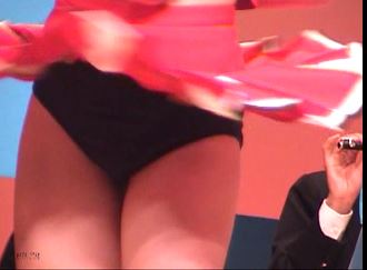 その他、お姫様だっこ を初めとして、頭上Y字パランス、ハイキック、ラインダンス、ジャンプ、と、♂っちがステージに望むものは、なんでもありのチラ尽くし。これ見よがし、なるお言葉もありますが、まさにこれ、扇情さの極み。終盤、スタンツでのコッチ向き開脚落下ちゃんも、その瞬間大張り切りで飛び蹴りなさっておりますが 、▼地帯ごと客席まで飛んでこないか、ホント心配でした 。