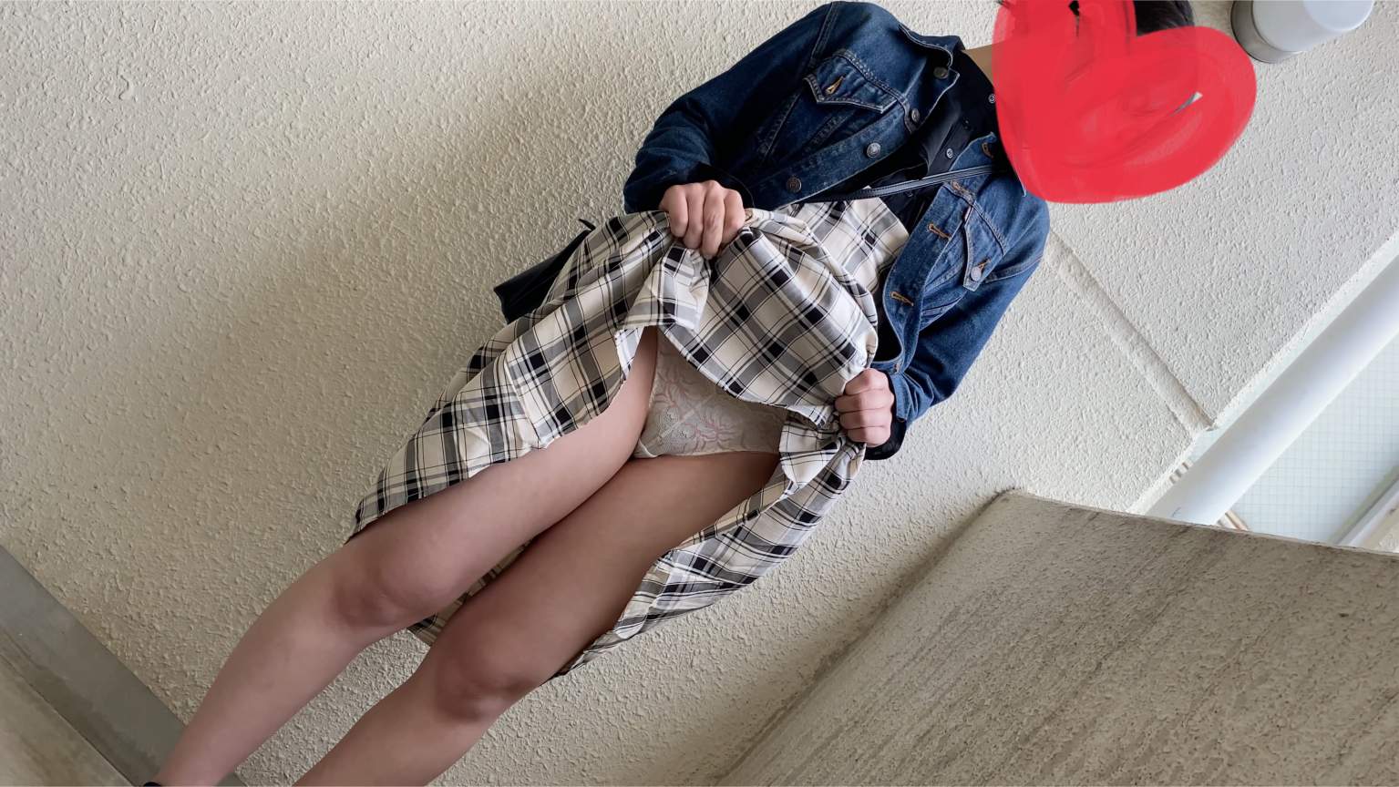 次のセルフスカートめくりでは、また少しずつスカートをめくり上げていくように指示。