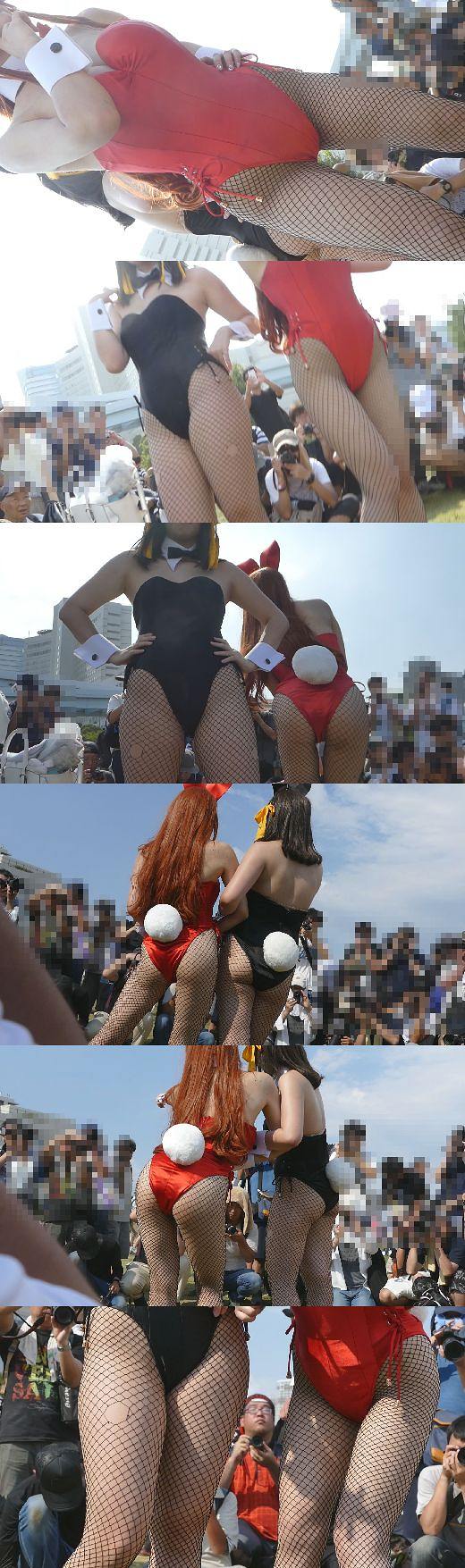 リアルにヤバすぎます!野外コスイベに集まる露出狂レイヤー達NO-16 赤&黒バニー編