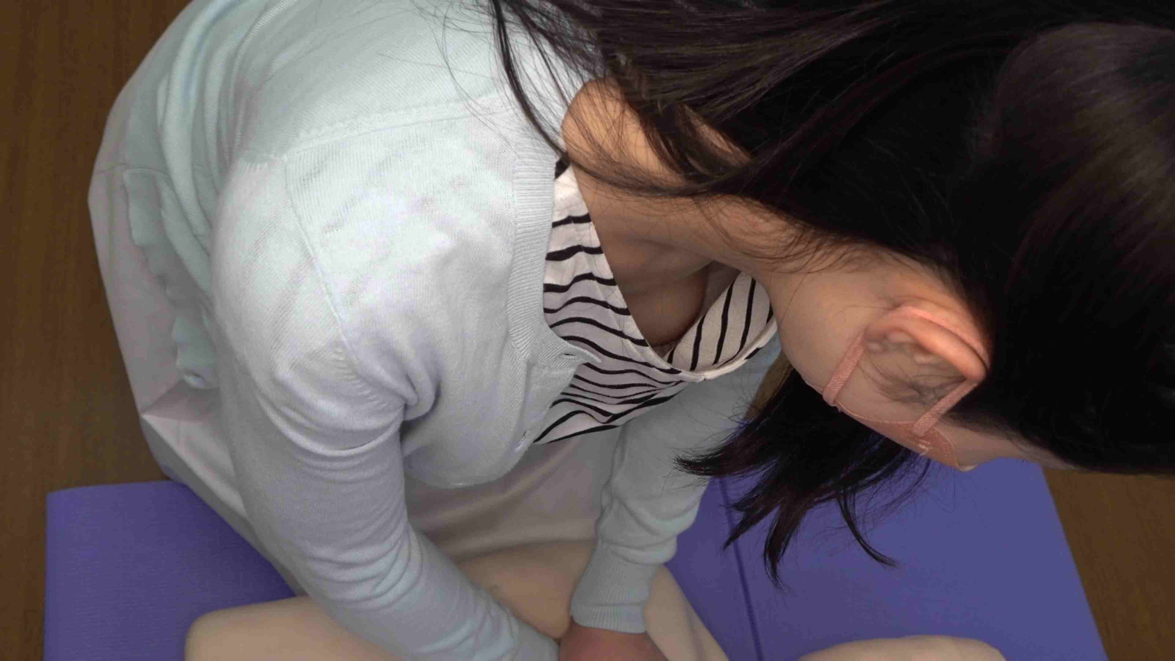 【救命講習/胸チラNo.70】剛毛ハミ毛の美女OLさんの講習と若妻さんの美巨乳胸チラ