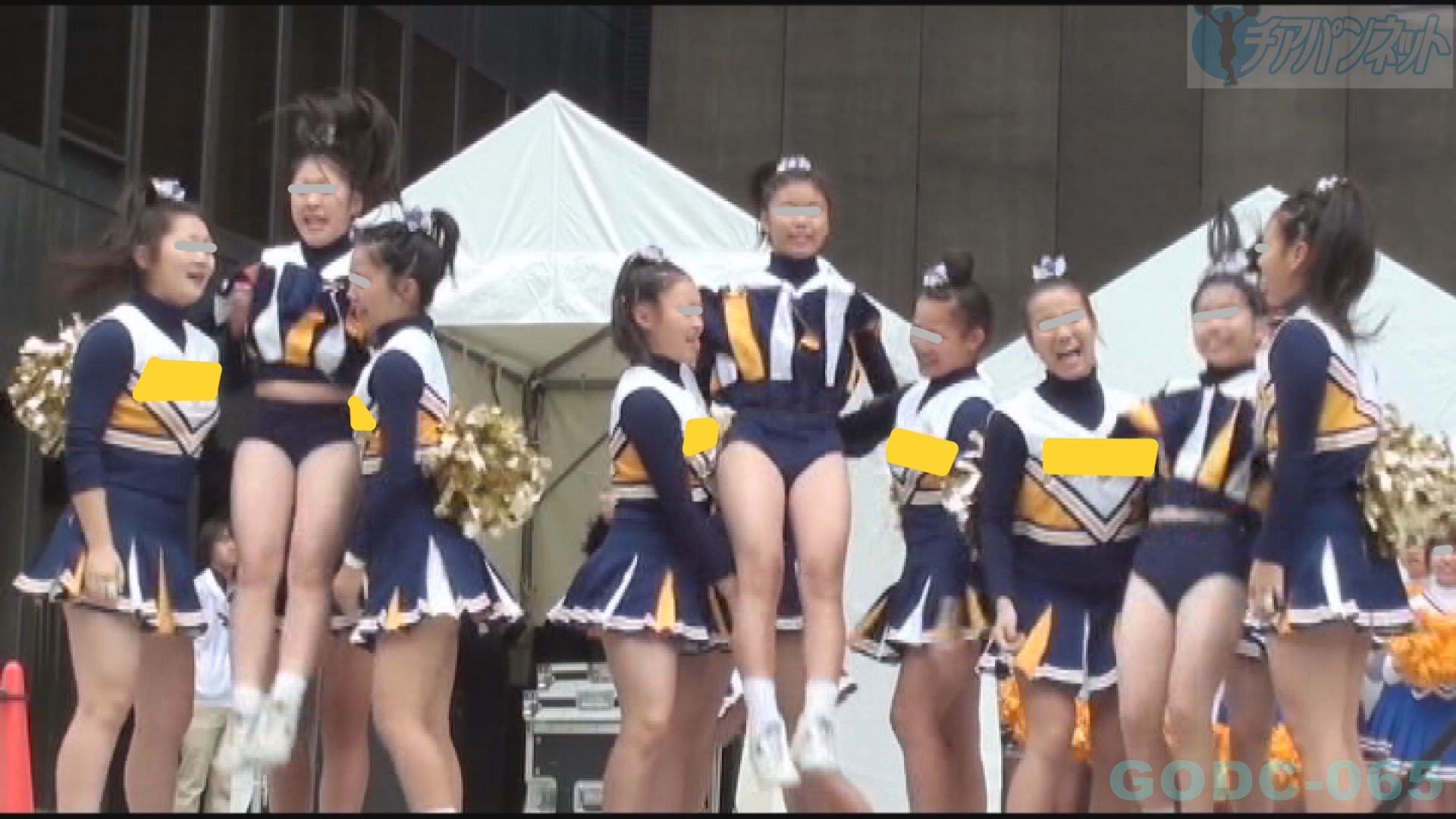 今回も得意のスタンツでトップのチアがおへそと紺ブルマ全開シーンの連続!