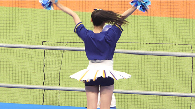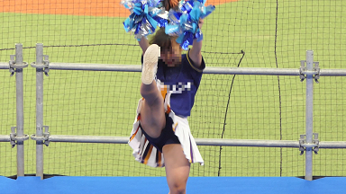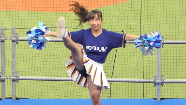 はじける笑顔、飛び出すチラ!これぞチアリーディング。